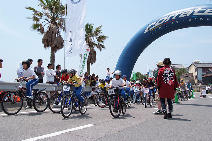 風光明媚な日間賀島の外周道路を周回する「市民サイクルパラダイスin日間賀島」を2003年より毎年主催しています。私たちが提唱する「自転車に乗る楽しさ」と地元の「観光」がお互いに融合したイベントで毎年楽しみにしていただけるリピーターも増えてきました。